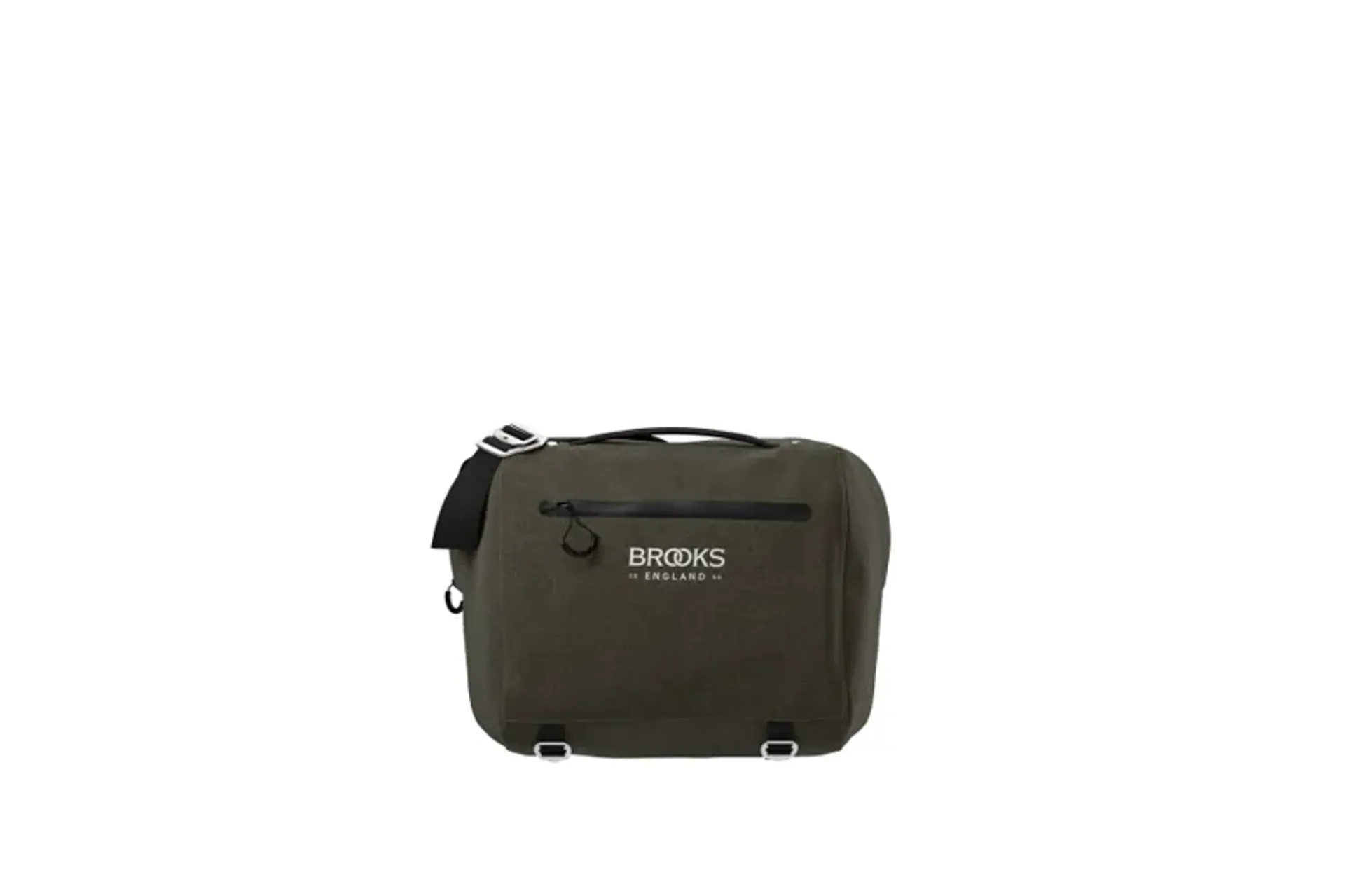 The Brooks Scape handlebar compact bag is a removable cycling briefcase made from lightweight, waterproof materials and all-round weatherproof details with an understated modern look.