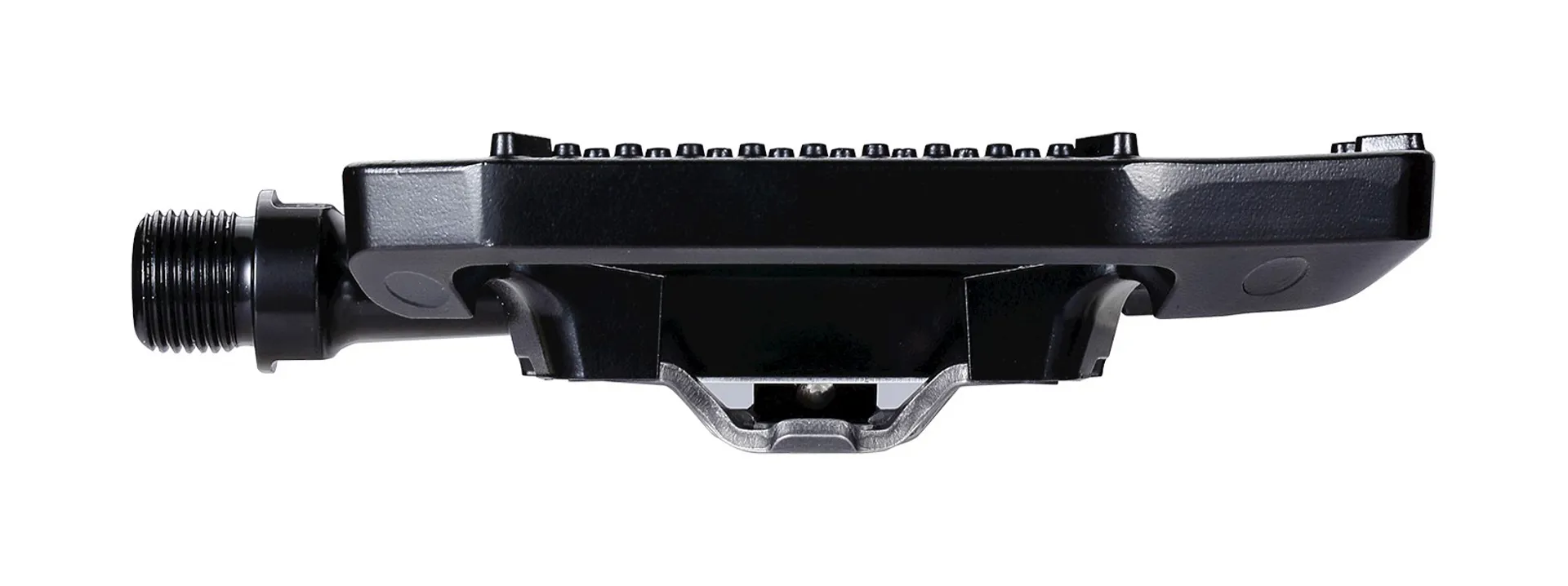 Two function pedal. One side SPD compatible click mechanism, other side equipped with anti-slip aluminium cage for street shoes.