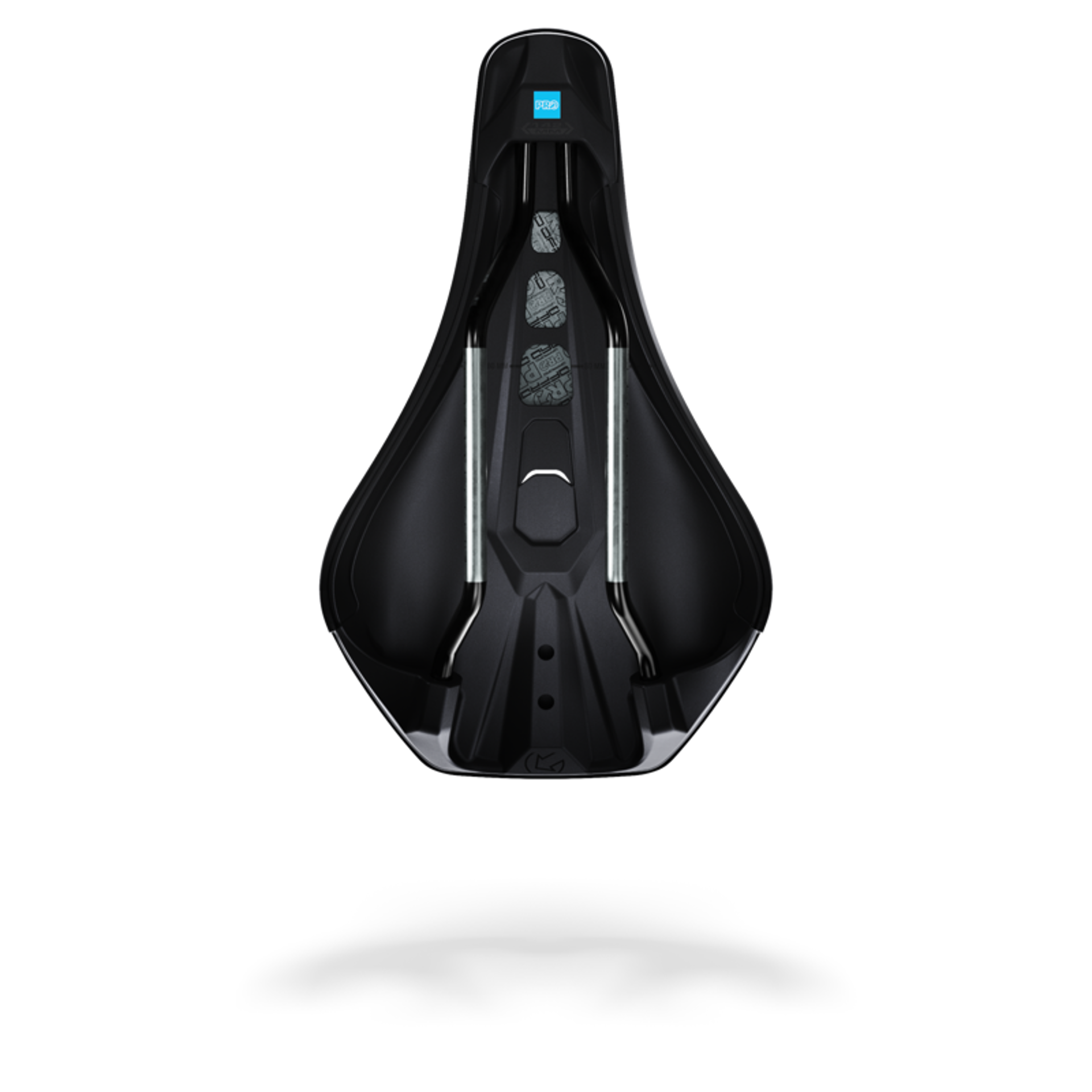 Comfort is enhanced by an anatomic fit recess, complete with a drainage port, as well as strategically located depths of EVA padding. The carbon-reinforced base is further stiffened by reinforced bridges below the anatomic fit recess. Greater control offroad is provided by the taller sides to the saddle, which allow for a large contact point to press against with the inner thigh during cornering. The saddle is set on INOX stainless steel rails and features a durable PU upper, which ergonomically wraps over the edges of the carbon-reinforced base. It is compatible with the Pro Saddle Accessory Mount.